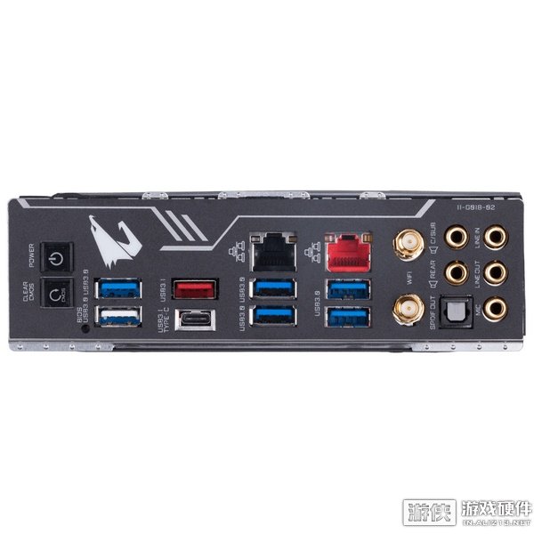 X299 AORUS MASTER的尾部I/O扩展包括:comS重置、电源开机键、2t2R无线天线扩展、2个USB3.1 gen.2 type-C/TYPE-A,6个USB3.1 Gen.1,2.5GbE LAN+千兆LAN,OPTical S/PDiF以及5孔音频端。