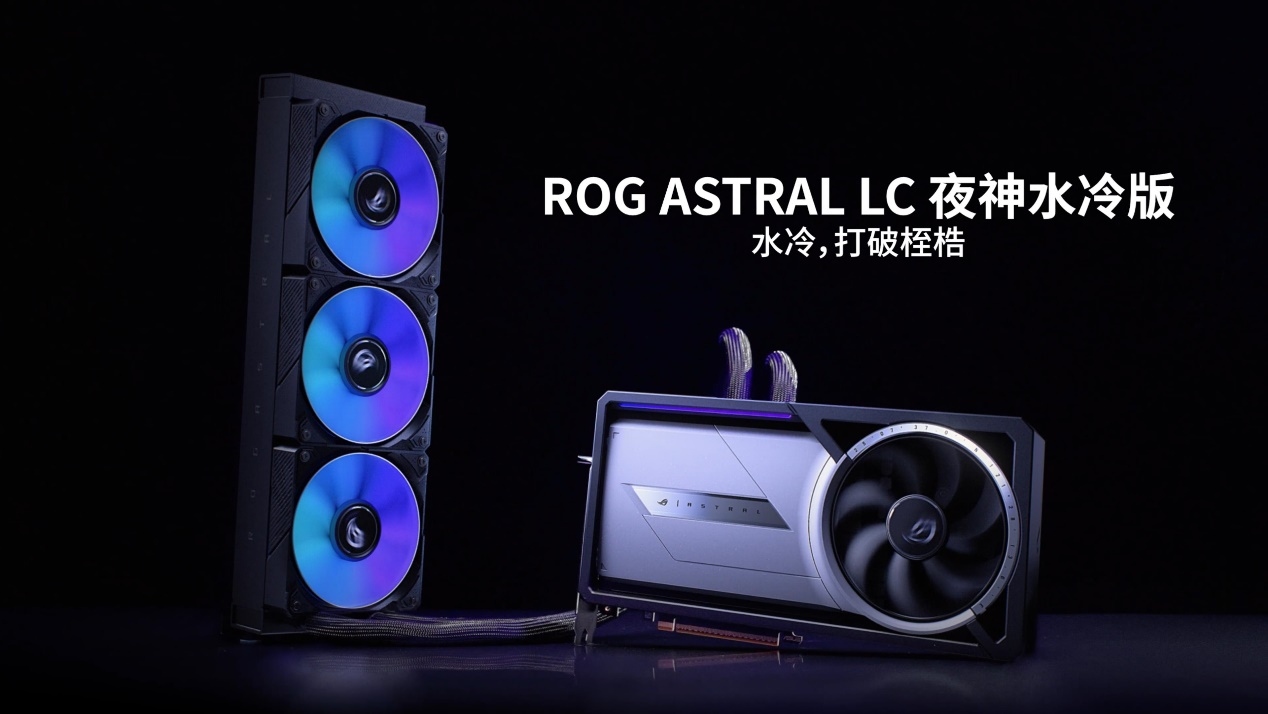对于水冷爱好者,华硕还提供了ROG ASTRAL LC夜神水冷版本!该系列采用了水冷散热器,搭配全覆盖冷板,使得超厚的360mm散热器可以冷却GPU和PCB上的其他产热组件。与风冷相比,ROG ASTRAL LC夜神水冷版本的热性能提高了高达30%,是寻求强大性能和安静运行的理想选择。