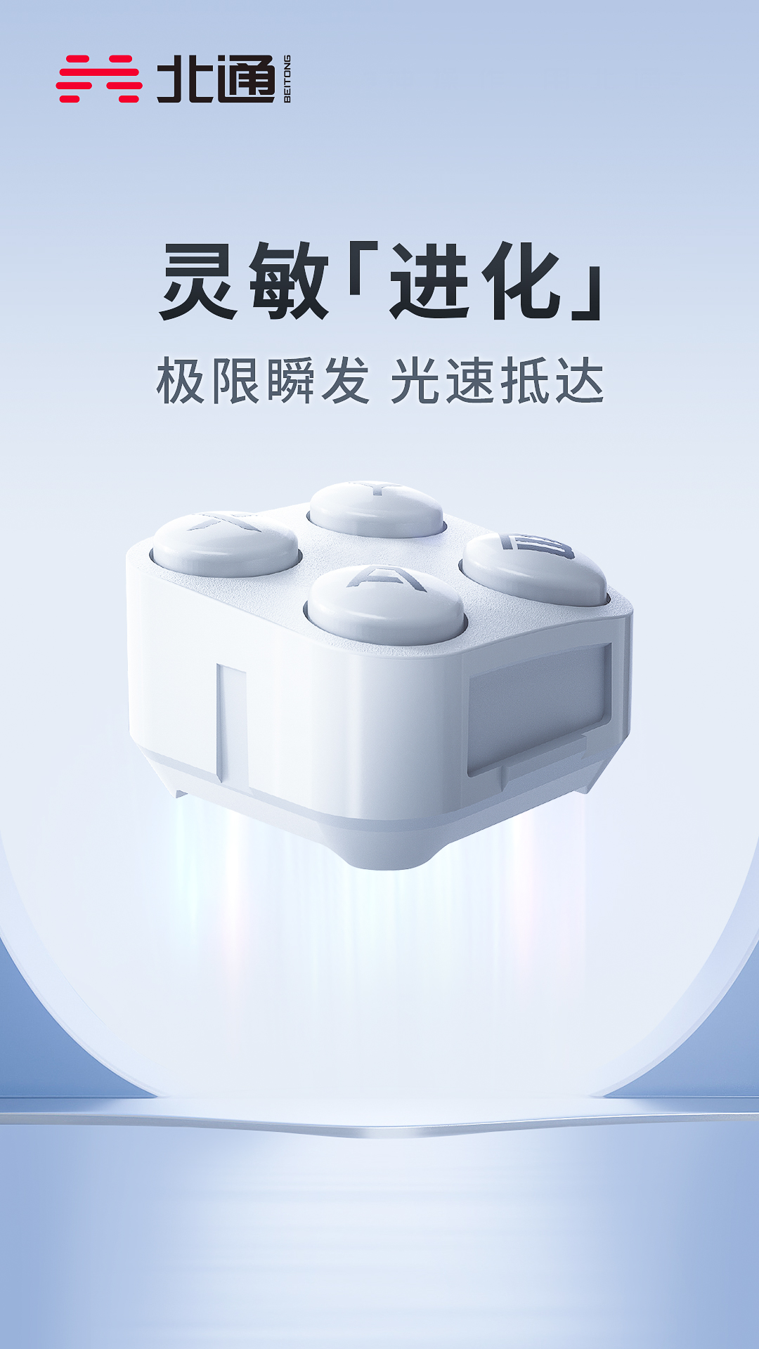 在最新预告图中,北通以“光”为主题,引出灵敏进化的按键升级。有曾经国产游戏手柄首次搭载机械按键的宙斯1珠玉在前,宙斯2会使用什么创新技术全面优化操作体验呢?