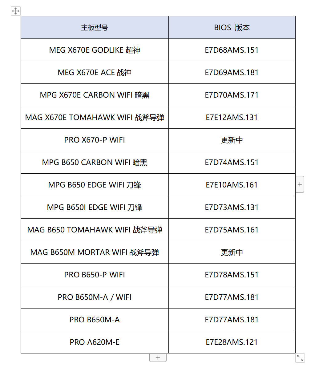 微星释出新BIOS限制7000X3D系列CPU电压,避免CPU可能的毁损风险