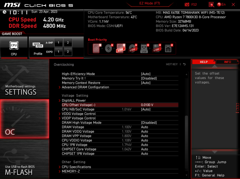 最新的X670/B650/A620 BIOS只支援负的offset电压设定,仅支援降低CPU核心电压。而MSI Center则限制无法调整CPU核心电压。这些限制旨在确保CPU的电压不会超过安全范围,从而减少因电压过高而导致的毁损。