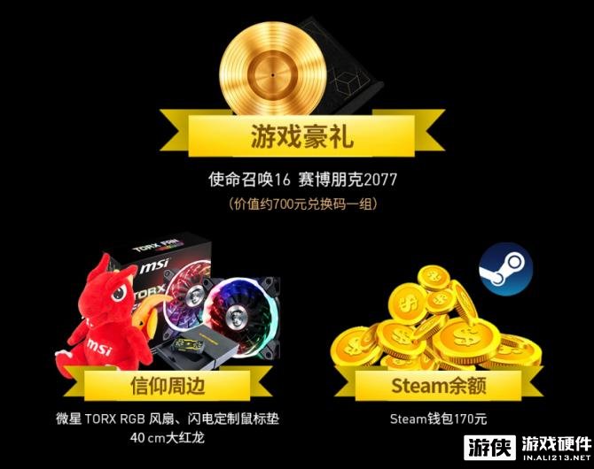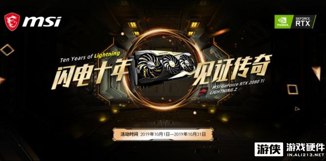 值此闪电系列显卡诞生十周年之际,MSI微星科技推出了”闪电十年见证传奇”促销活动,在2019年10月1日-10月31日期间购买微星Geforce RTX 2080 Ti LIGHTNING Z显卡,即可获赠三重豪礼,礼品分别是:使命召唤16和赛博朋克2077两款超高人气的游戏大作(价值约700元的兑换码一组)、微星TORX RGB风扇、闪电定制鼠标垫、40cm大红龙以及Steam钱包170元赠金。