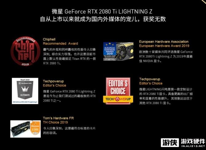 而微星Geforce RTX 2080 Ti LIGHTNING Z闪电显卡更是甫一面世就赢得了众多海内外专业媒体的无数赞誉和奖项,风头一时无两;