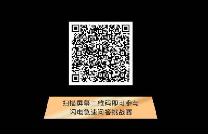 并且,活动期间用户还可以通过扫描以下二维码参加闪电急速问答挑战赛获取抽奖机会;