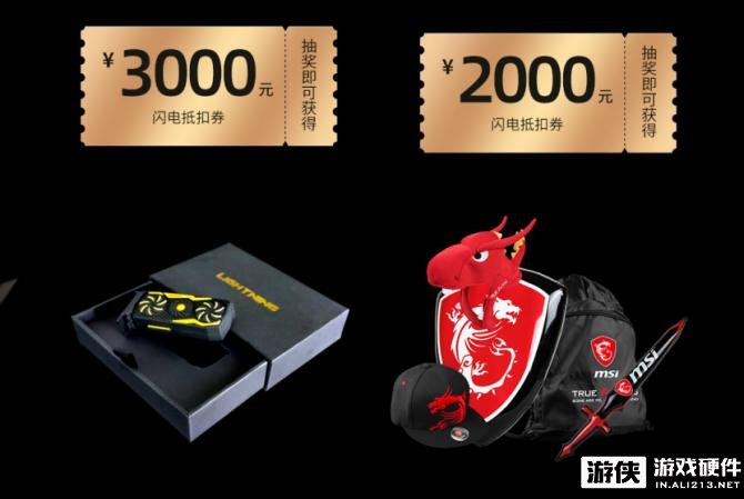 通过抽奖用户将有机会获得闪电3000元抵扣券(1张)、闪电2000元抵扣券(3张)、闪电10周年定制U盘(50个)以及微星信仰周边Goodie Bag(50个)。