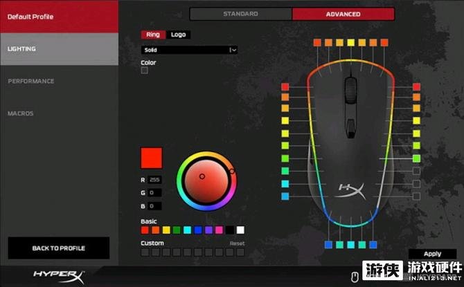 HyperX Pulsefire Surge巨浪RGB电竞鼠标采用了33颗RGB LED灯,组成炫彩灯条,并且通过HyperX NGenuity专业定制软件,可以轻松实现定制RGB灯光效果,1680万色RGB动态光效的实际效果远远超过目前市场上其他单调的单色呼吸灯。