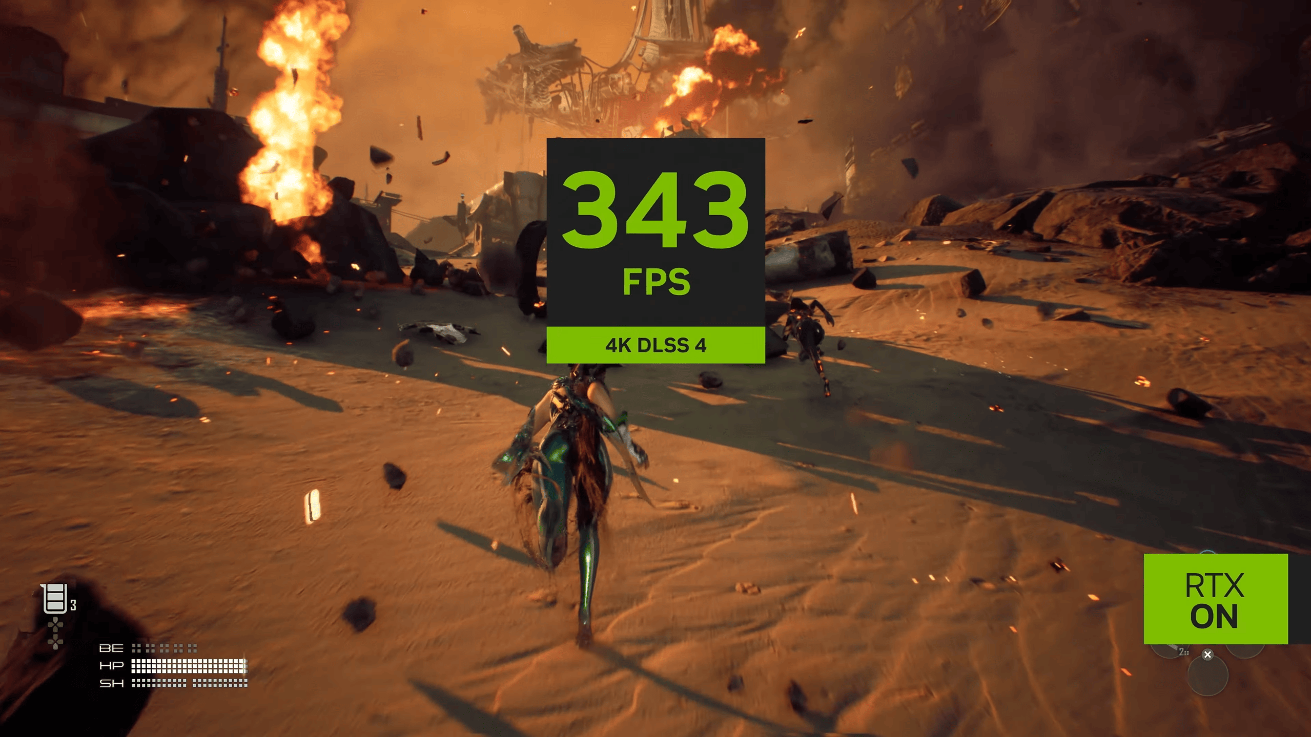 在《剑星》中启用 DLSS 4 技术,GeForce RTX 50 系列显卡在 4K 最高设置下的性能可平均提升至原来的 3.4 倍,在 GeForce RTX 5080 和 GeForce RTX 5070 Ti 上,以超过 300 FPS 的帧率畅玩游戏。在 GeForce RTX 5070 上可实现超过 260 FPS 的帧率。使用最新 Transformer AI 模型的 DLSS 超分辨率将进一步提升图像质量!